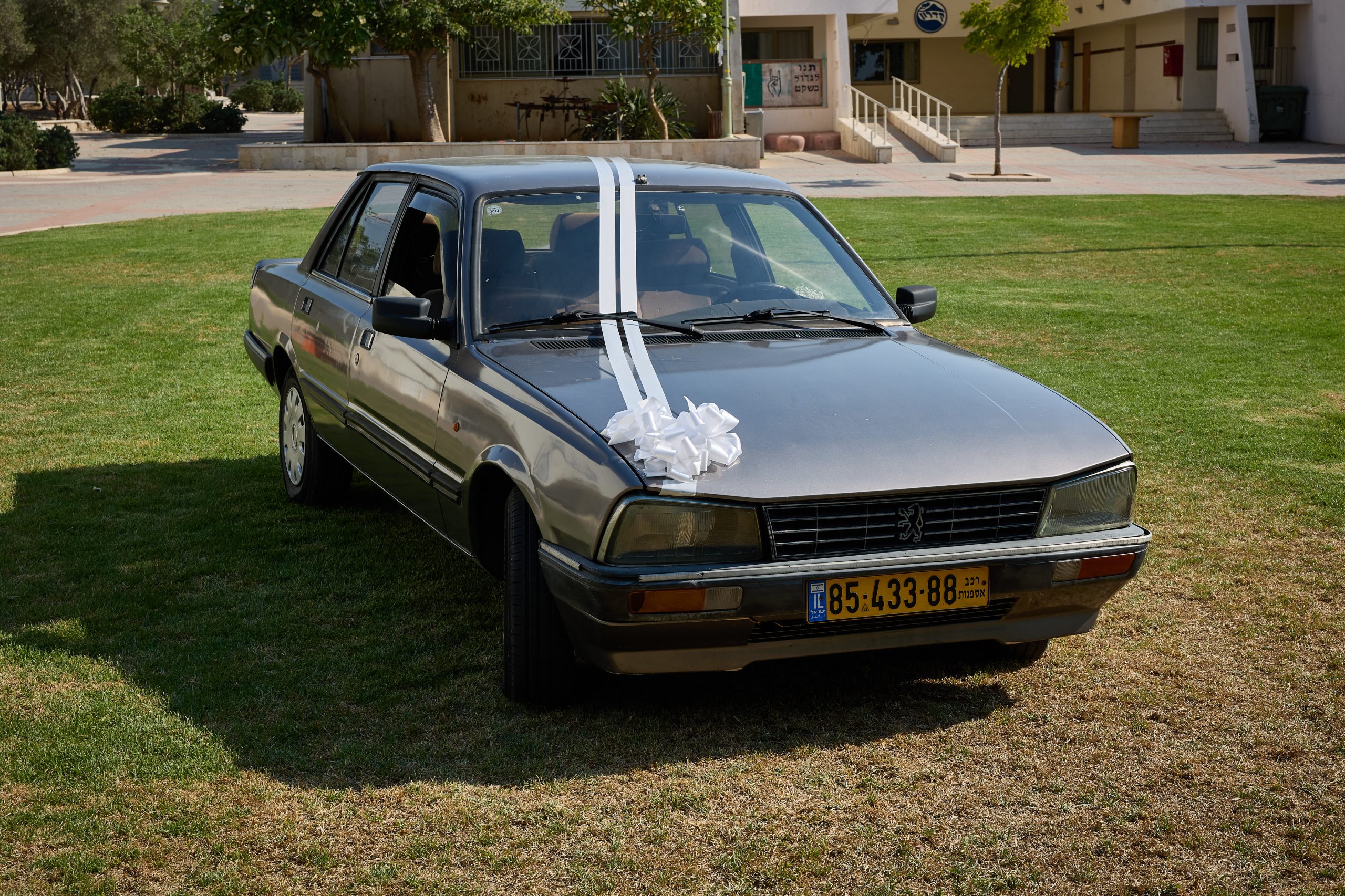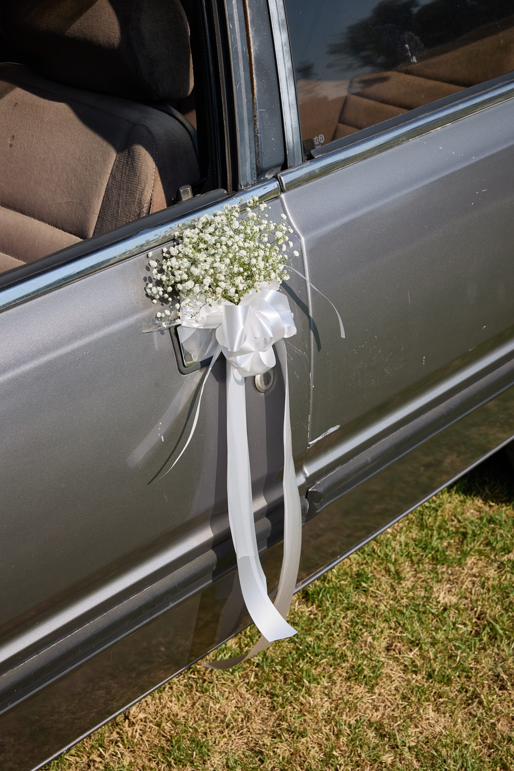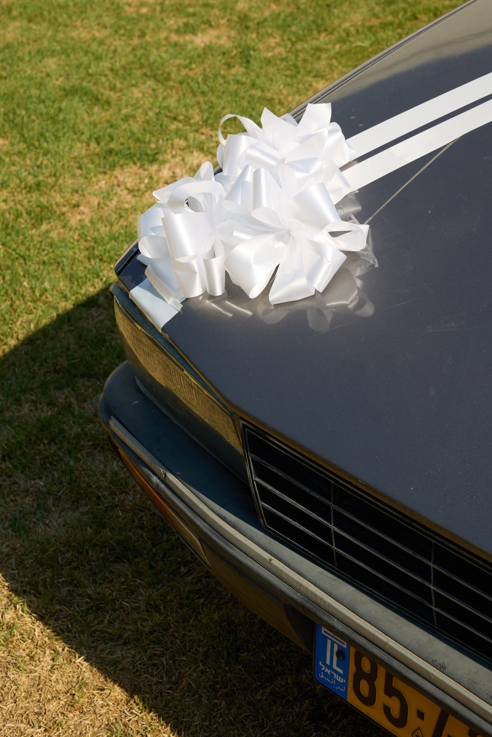 על מכסה המנוע – סרט לבן רחב, המעוטר בקשר פרפר חגיגי במרכז, מעניק מראה יוקרתי וחגיגי כבר ממבט ראשון.